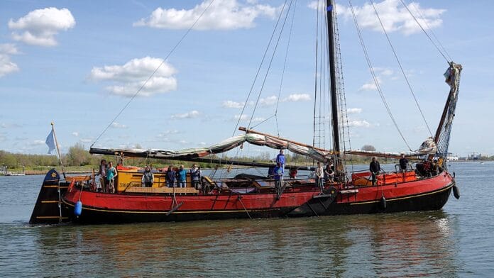 Puttershoek – De haven van Puttershoek vormde op maandag 6 april 2026 (Tweede Paasdag) opnieuw het decor van een bijzonder historisch tafereel. De authentieke zeiltjalk De Vrijbuiter meerde traditiegetrouw aan om een lading graan te lossen, bestemd voor de molens in de regio.