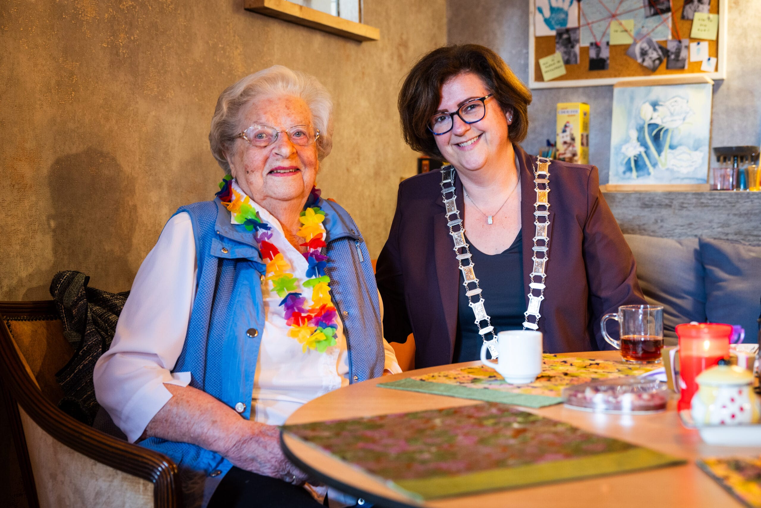 Mevrouw Herweijer-Bos uit Klaaswaal is gisteren, donderdag 9 april, 100 jaar geworden. Burgemeester Marian Witte ging gisterenmiddag bij haar op bezoek om haar namens het gemeentebestuur hartelijk te feliciteren met het bereiken van deze hoge leeftijd. Voor deze bijzondere verjaardag had zij een mooie bos bloemen en een doosje bonbons meegenomen.