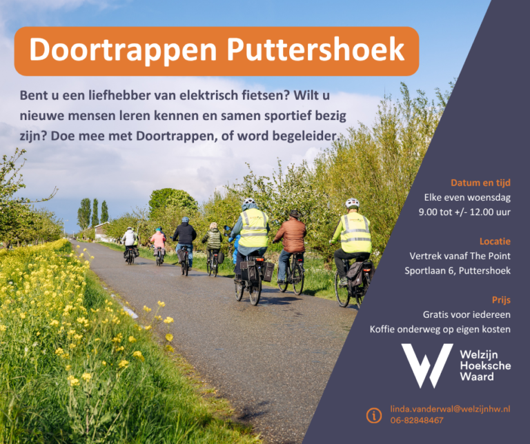 Bent u een liefhebber van fietsen? Vindt u het leuk om nieuwe mensen te leren kennen en samen sportief bezig te zijn? Doe dan mee met Doortrappen in Puttershoek!