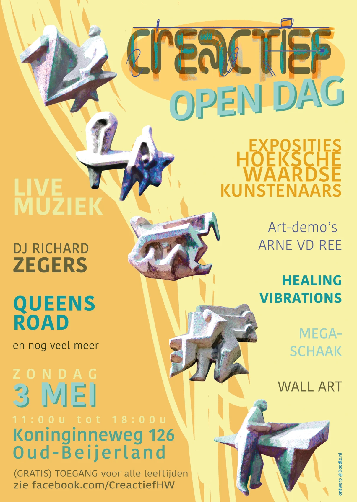 OUD-BEIJERLAND – CreActief, de bruisende culturele broedplaats van de Hoeksche Waard, opent op zondag 3 mei haar deuren voor een feestelijke open dag. Bezoekers kunnen tussen 11.00 en 18.00 uur terecht aan de Koninginneweg 126 voor een dag vol kunst, muziek en creatieve inspiratie.