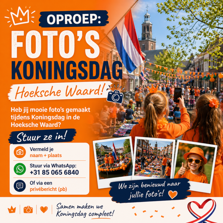 HOEKSCHE WAARD – Koningsdag 2026 wordt weer volop gevierd in de Hoeksche Waard, met vrijmarkten, optochten, de Truckersrit en feestelijke activiteiten in alle dorpen. Heb jij mooie foto’s gemaakt van deze gezellige dag? Dan is Hoeksch Nieuws op zoek naar jouw beelden!