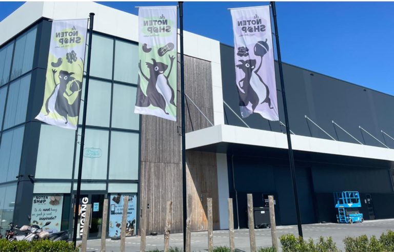 Door de afronding van de werkzaamheden is het parkeerterrein weer volledig toegankelijk. Bezoekers kunnen hun auto weer direct voor de winkel parkeren, wat het winkelen een stuk makkelijker maakt. Het terrein is eenvoudig te herkennen aan de drie grote Notenshop-vlaggen voor het pand.