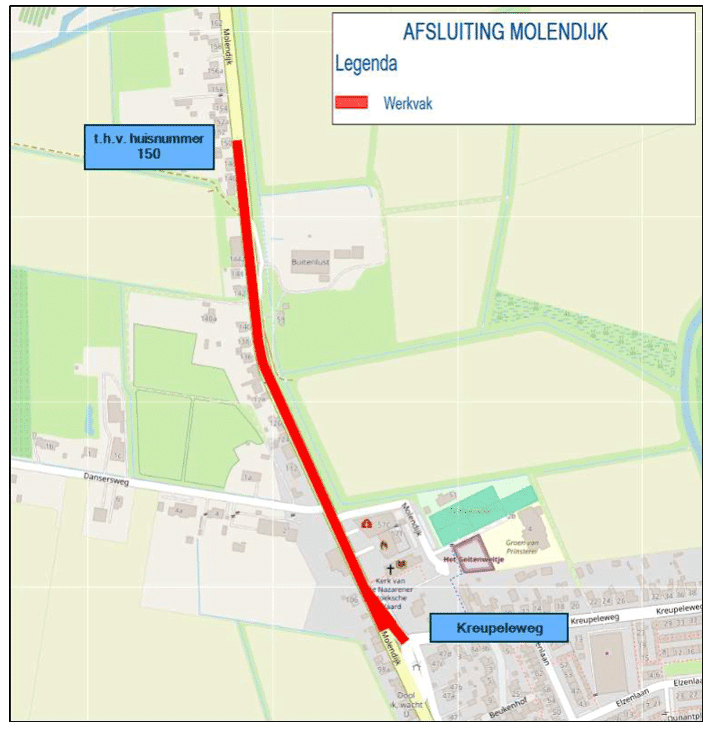 D. van der Steen B.V. gaat werkzaamheden uitvoeren aan de Molendijk in Klaaswaal. Tussen Molendijk 150 en de Kreupeleweg wordt het asfalt vervangen. Daarnaast zijn er aanvullende werkzaamheden zoals het aanbrengen van belijning en een rode coating op de fietsstroken. Voorafgaand aan deze werkzaamheden herstelt Van den Berg Westmaas B.V. het straatwerk van de stoepen.